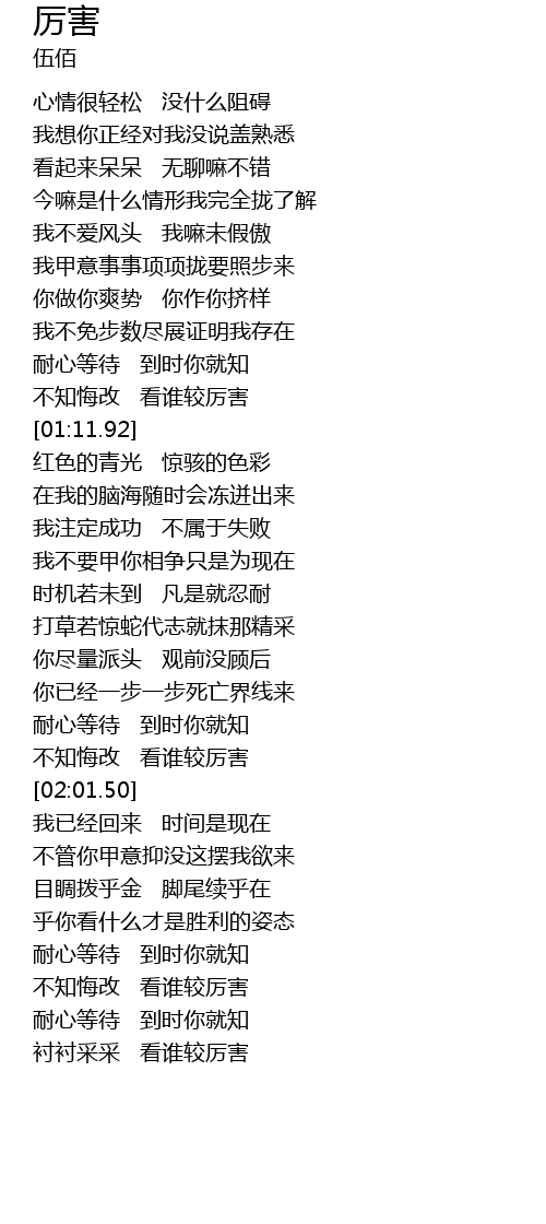 | [01:57.36] | 不知悔改 看谁较厉害 |