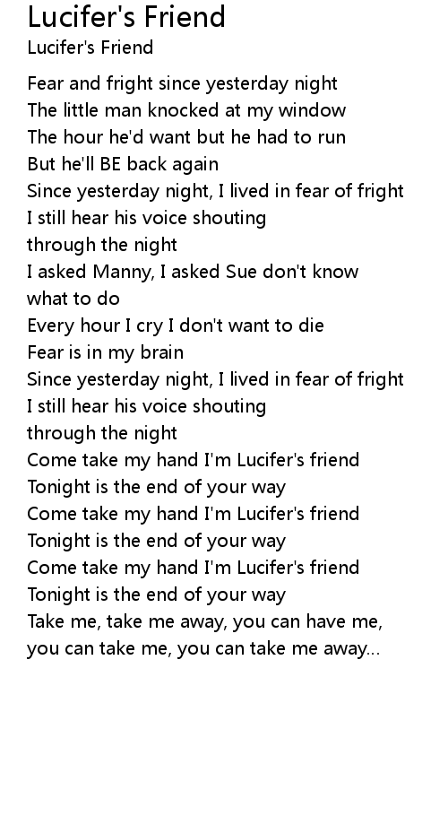 | Come take my hand I' m Lucifer' s friend | |