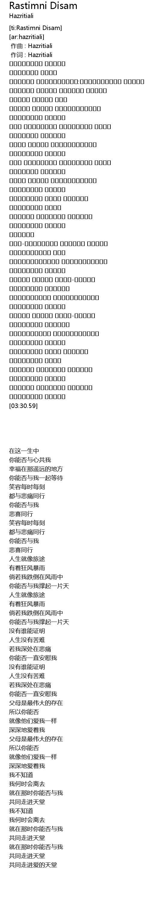| [00:00.00] | zuò qǔ : Hazritiali |