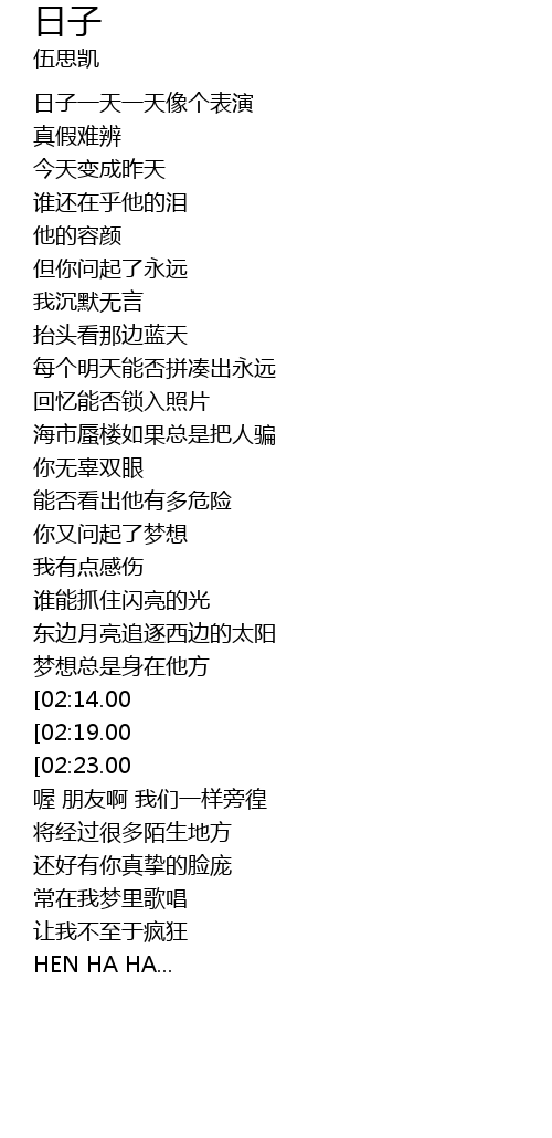 | [00:30.00] | ri zi yi tian yi tian xiang ge biao yan |