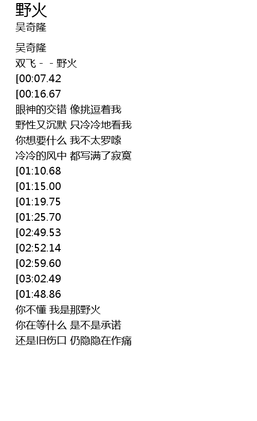 | [02:13.02][00:16.67] | 再没有把握 快变成了野火 |