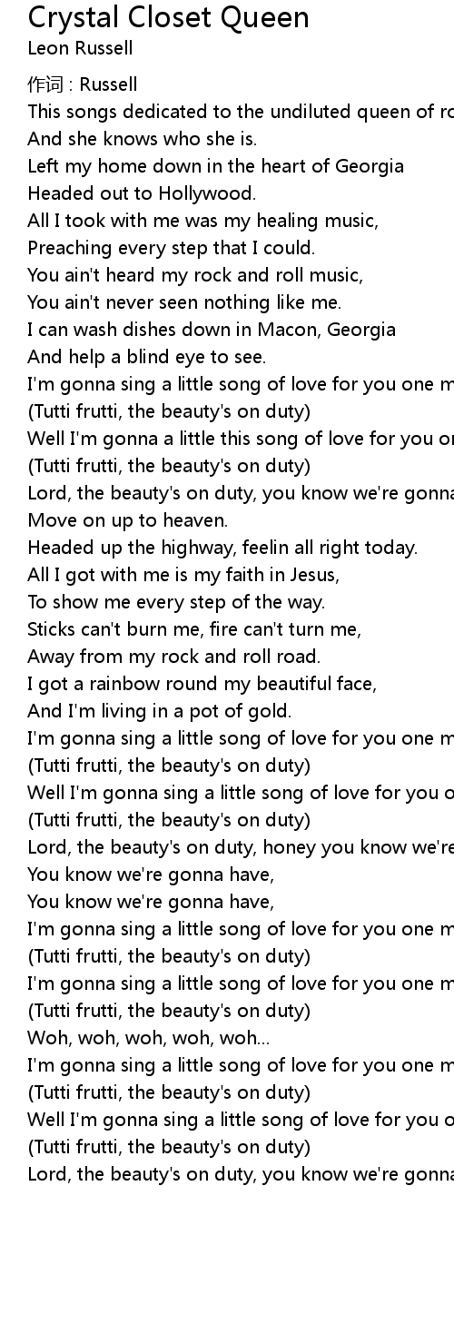 | This songs dedicated to the undiluted queen of rock and roll, | |