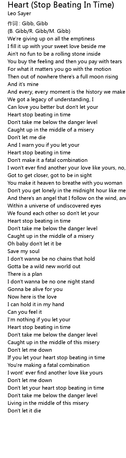 | Don' t let your heart stop beating in time | |