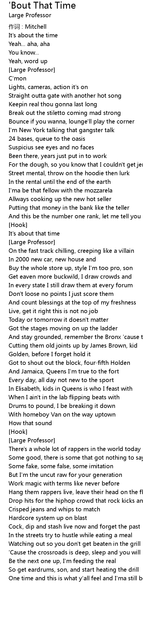 | 歌曲 | 'Bout That Time |
