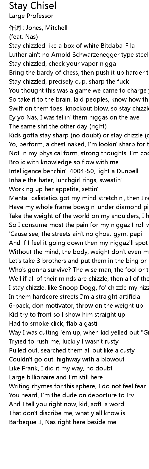 | I stay chizzle, like Snoop Dogg, fo' chizzle my nizzle | |