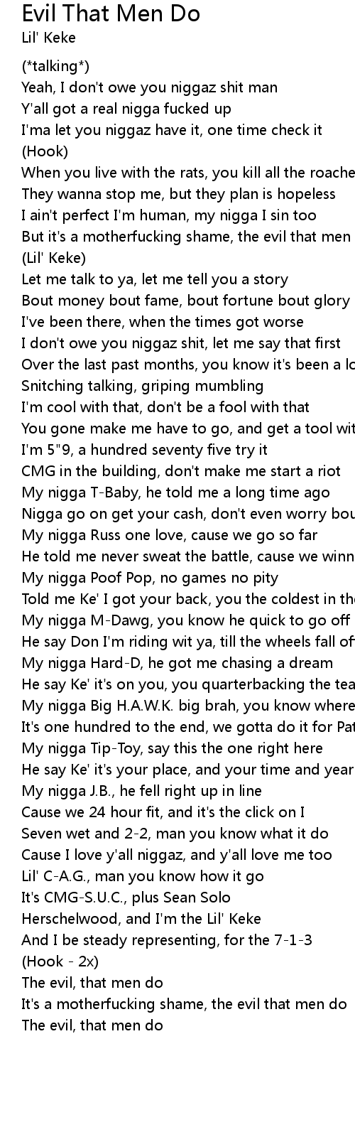 But it's a motherfucking shame, the evil that men do |