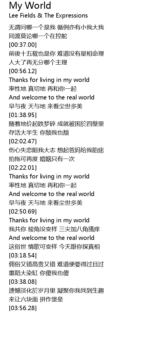 | [00:58.15] | Thanks for living in my world |