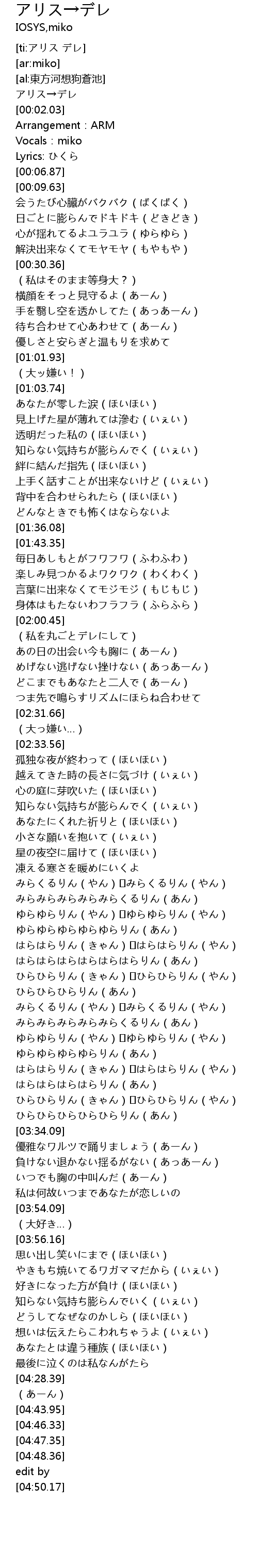 | [00:00.87] | アリス→デレ |