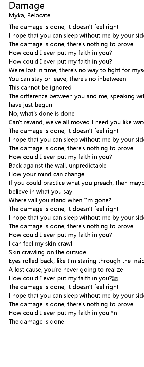 | [00:00.20] | The damage is done, it doesn't feel right |