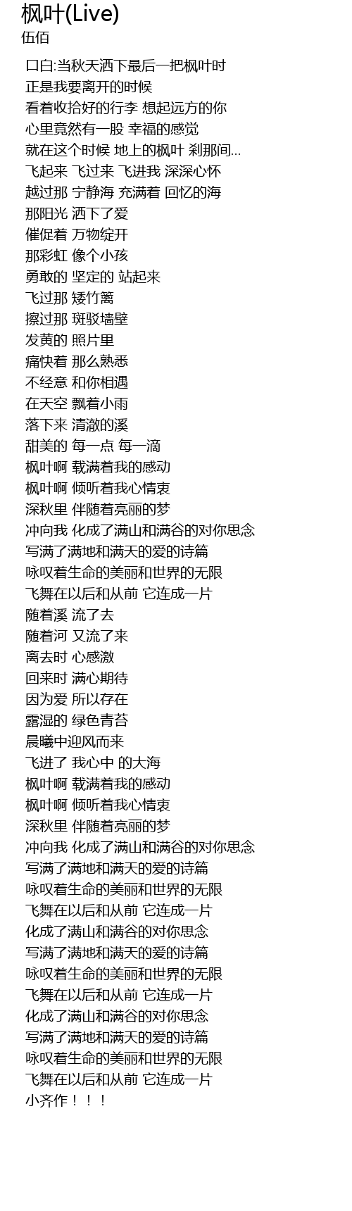 | 歌曲 | 枫叶(Live) |