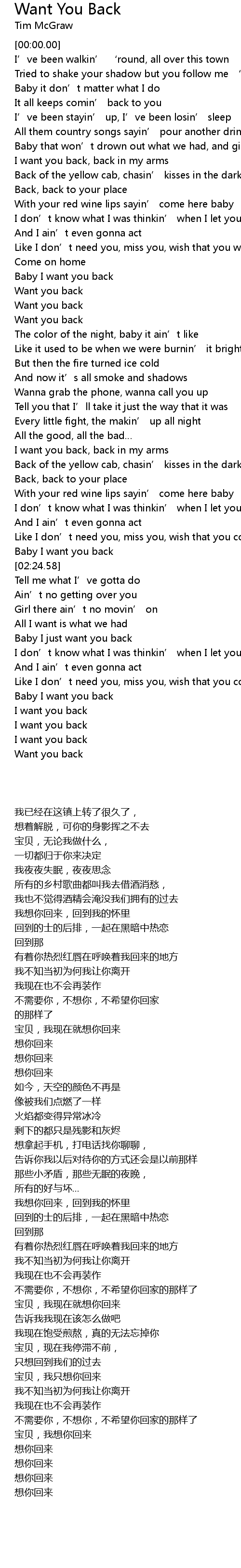 | [02:41.90] | Baby I just want you back |