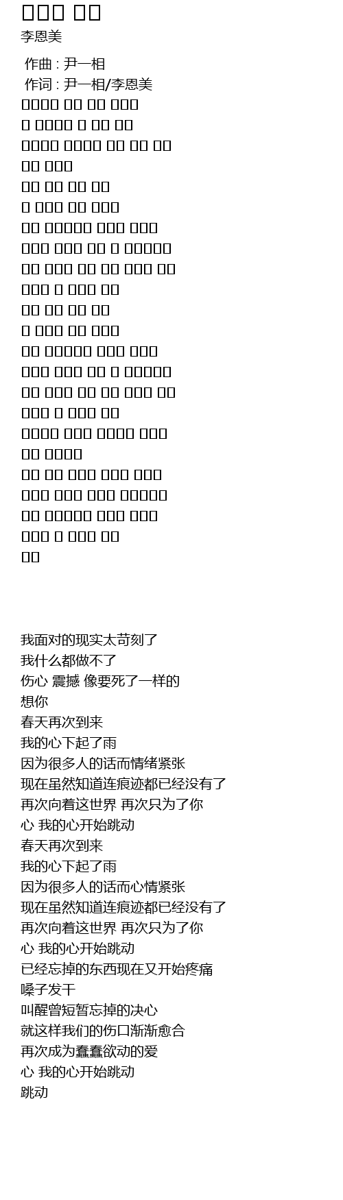 | [00:01.00] | 作词 : 尹一相/李恩美 |