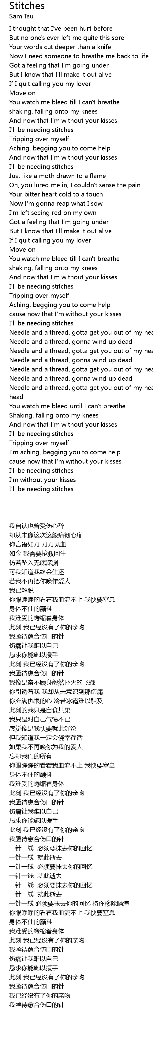 Needle and a thread, gotta get you out of my head, get you out of my head |
