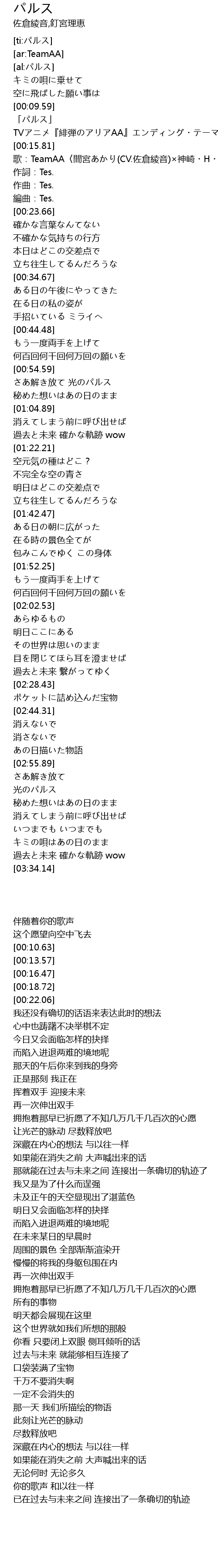 | [00:10.63] | 「パルス」 |