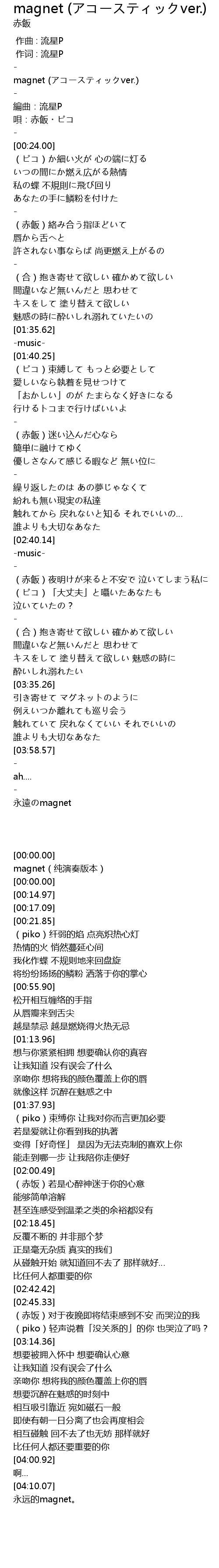 | [00:00.00] | magnet (アコースティックver.) |