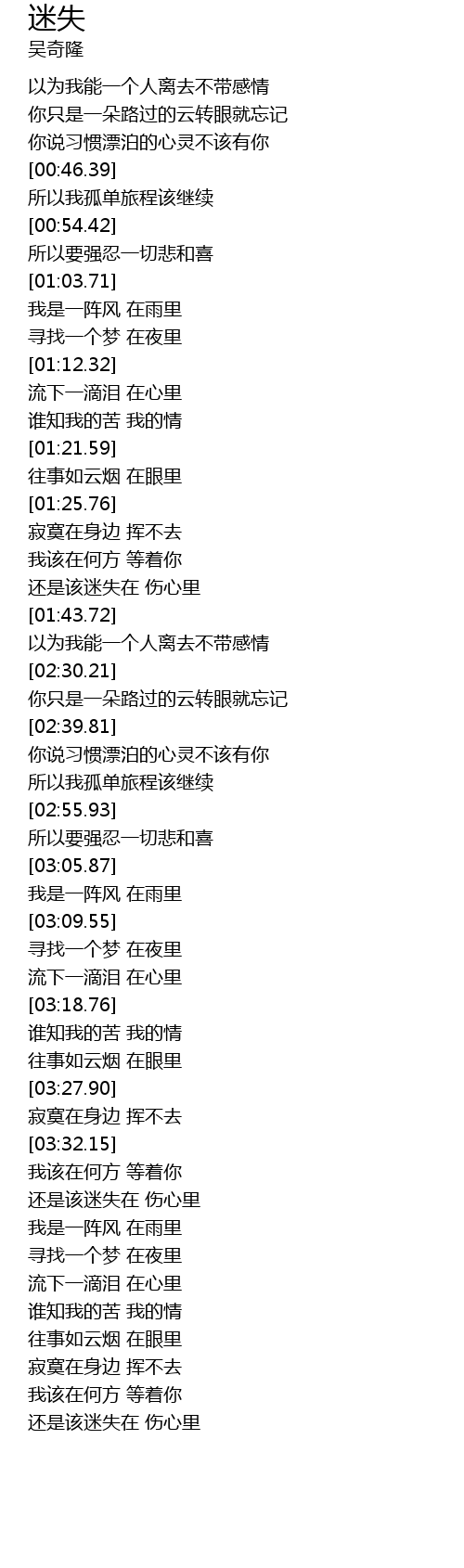 | [00:38.23] | 你说习惯漂泊的心灵不该有你 |