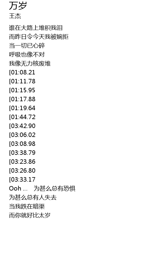 | [02:58.21][01:44.72][01:27.01] | 狂妄高呼我「万岁」 |