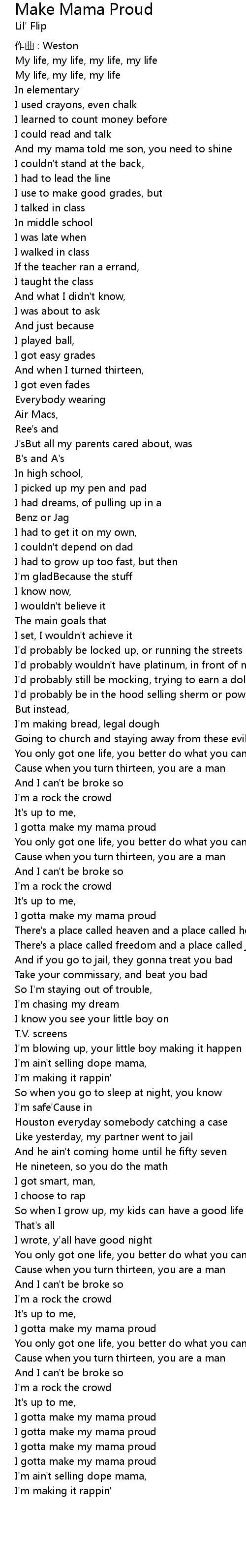 | I gotta make my mama proud | |