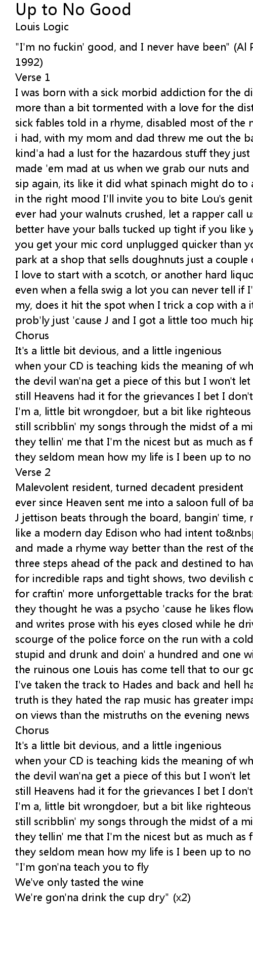 they seldom mean how my life is I been up to no good |