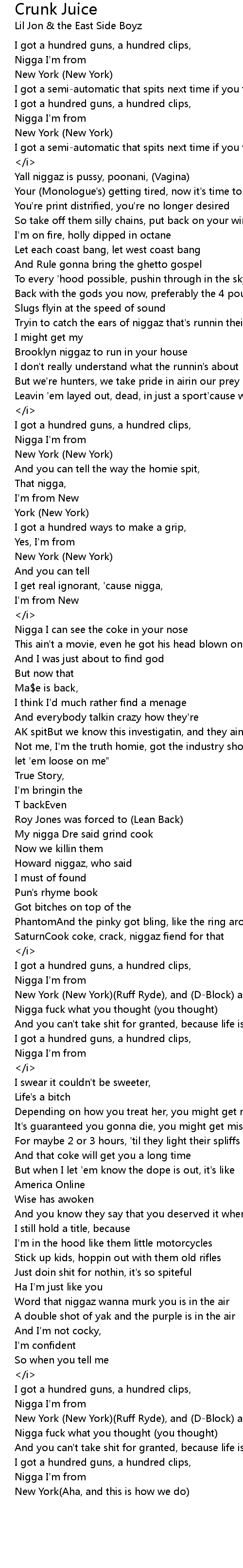 I got a semi-automatic that spits next time if you talk (you talk)(And I know)<i>[Verse 1 - Ja Rule]</i> |
