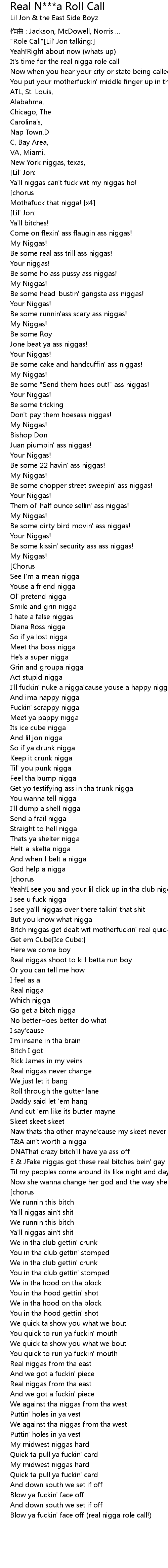 | 歌曲 | Real N***a Roll Call |