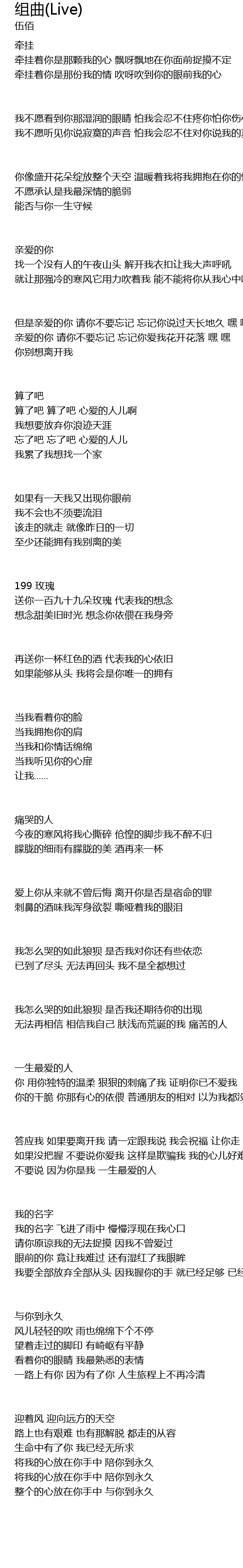 | 歌曲 | 组曲(Live) |