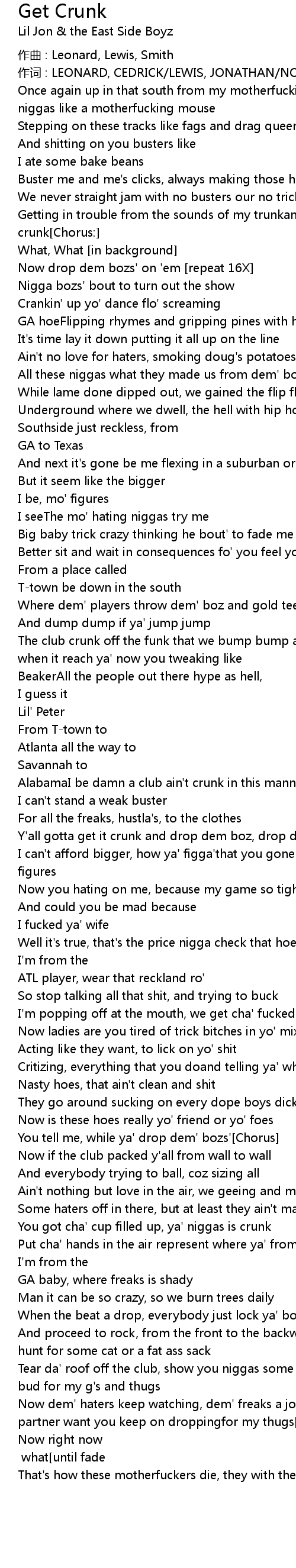 | Getting in trouble from the sounds of my trunkand keeping it crunk, keeping it crunk Chorus: | |