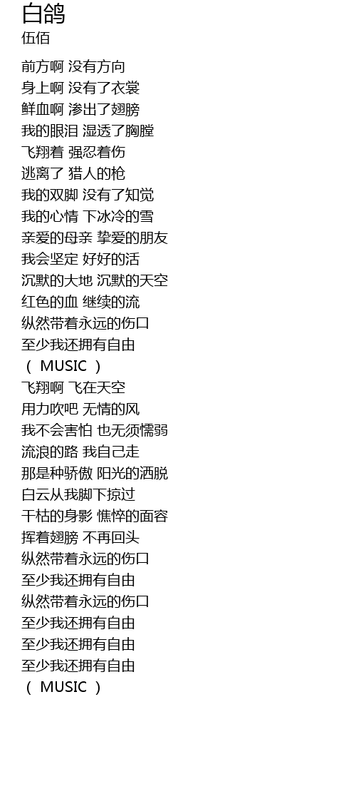 | [03:30.38] | zhì shǎo wǒ hái yōng yǒu zì yóu |
