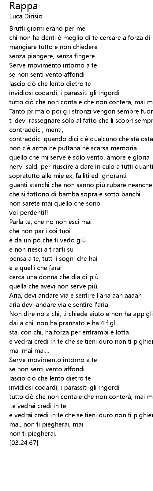 | [01:47.68] | Aria, devi andare via e sentire l' aria aah aaaah |