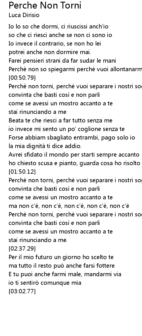 | [02:15.68] | Perche non torni, perche vuoi separare i nostri sogni |