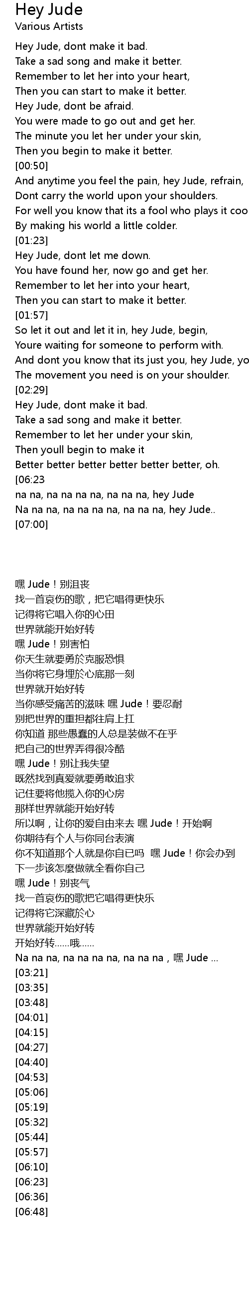 And dont you know that its just you, hey Jude, youll do, |