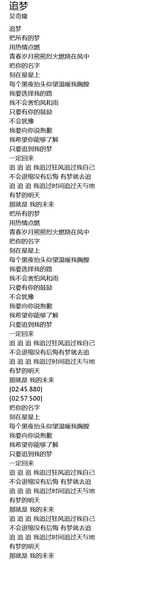 | [02:26.490] | 不会退缩没有后悔有梦就去追 |