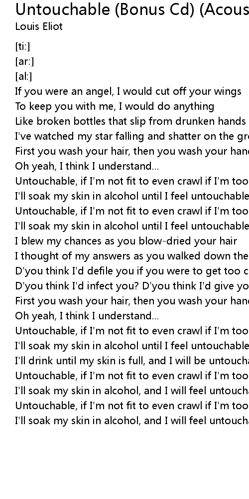 I'll soak my skin in alcohol, and I will feel untouchable. |