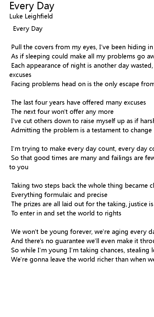 Each appearance of night is another day wasted, missed opportunities, failed excuses |
