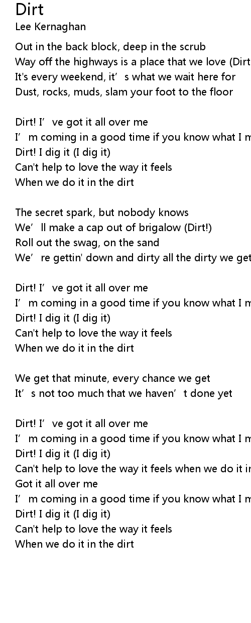 | Can' t help to love the way it feels when we do it in the dirt | |