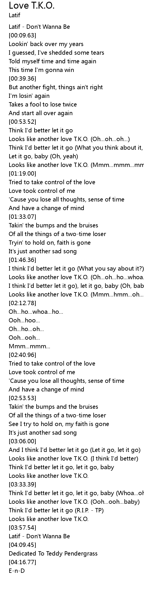 Looks like another love T.K.O. (Mmm...hmm...oh...ho...oh...) |