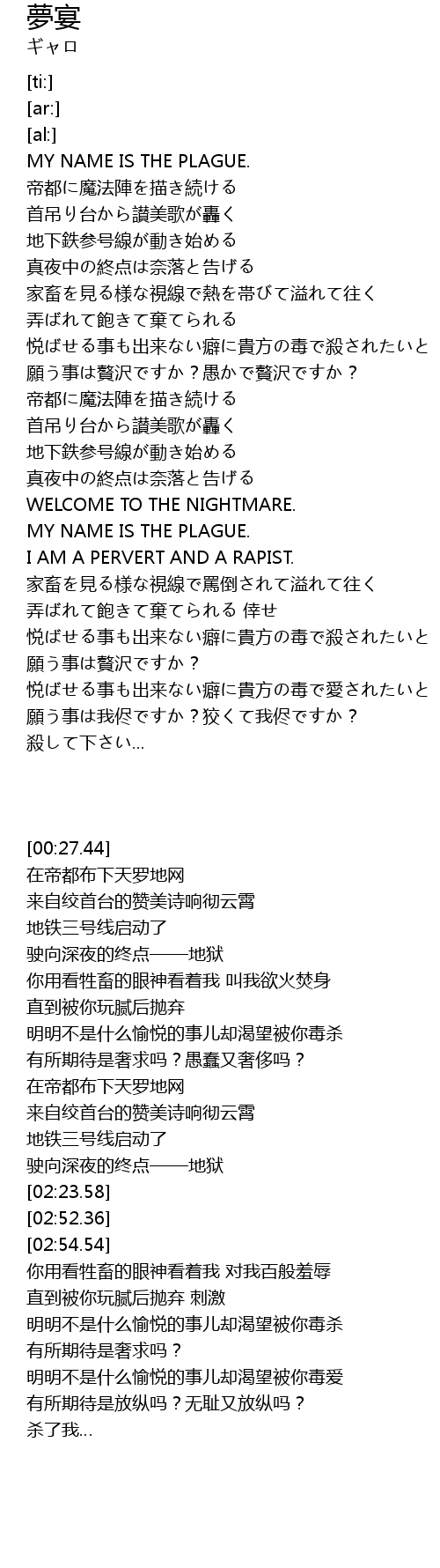 | [02:01.52] | 真夜中の終点は奈落と告げる |