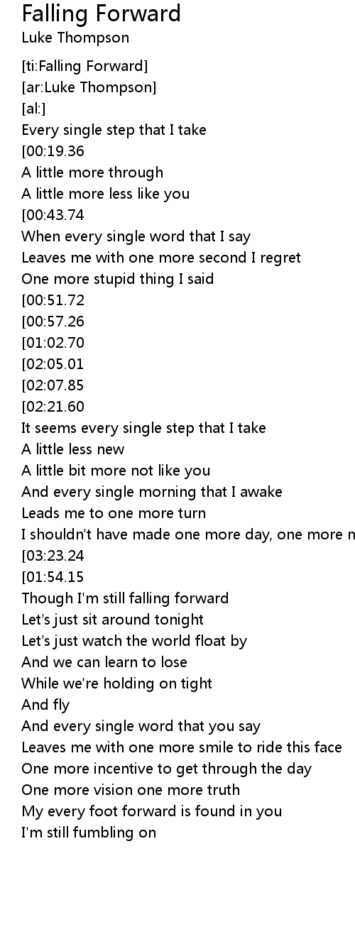 [03:56.52][01:02.70] Hey I'm still falling forward