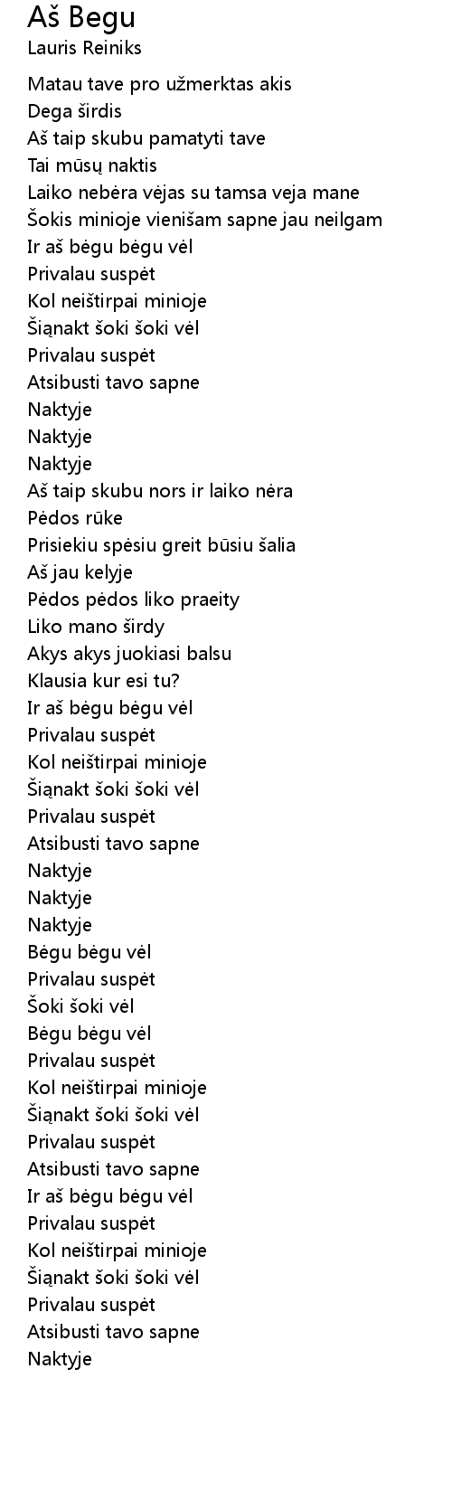 | 歌曲 | Aš Begu |
