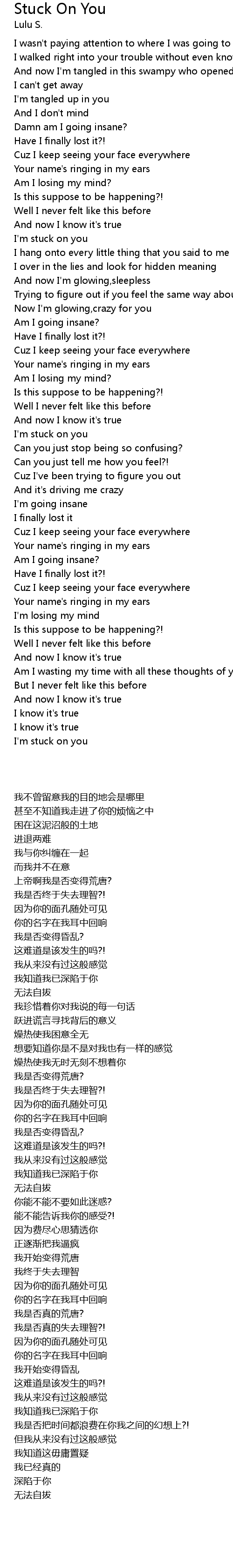Stuck On You 歌词