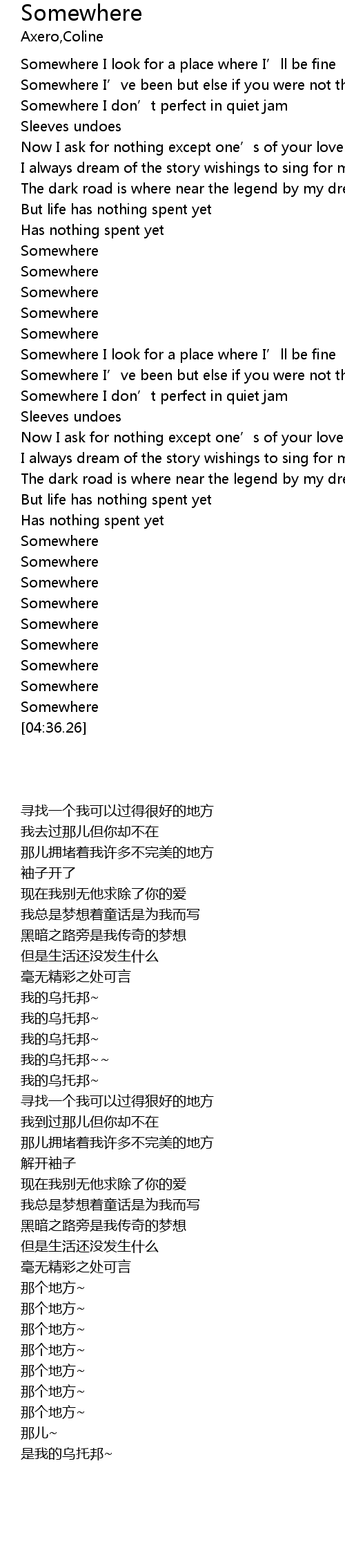 | [03:00.86] | Somewhere I' ve been but else if you were not there |