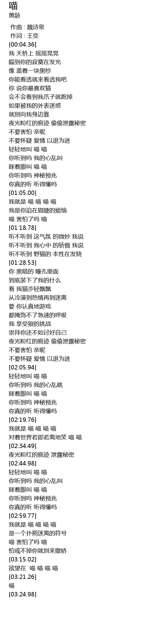 | [02:20.66] | 我就是 喵 喵 喵 喵 |