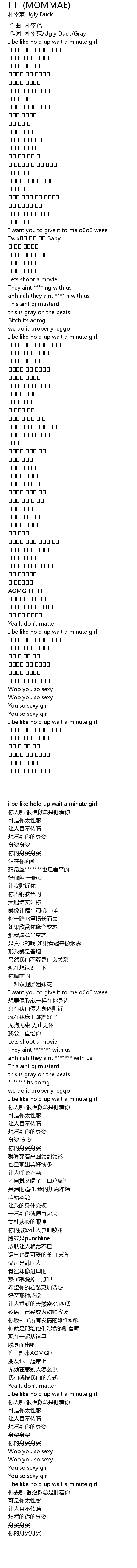 | [00:01.00] | 作词 : 朴宰范/Ugly Duck/Gray |