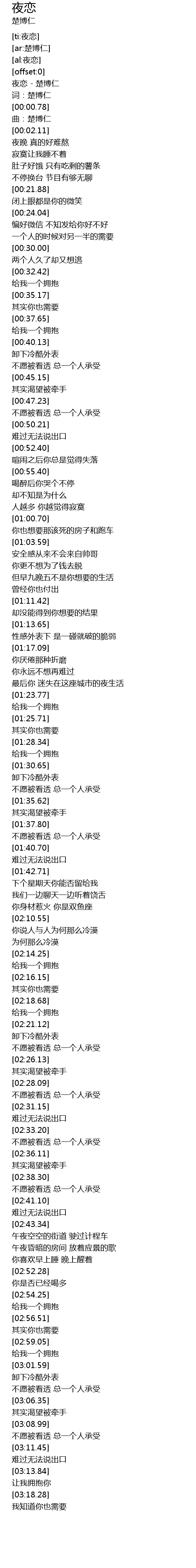 | [00:00.42] | 夜恋 - 楚博仁 |