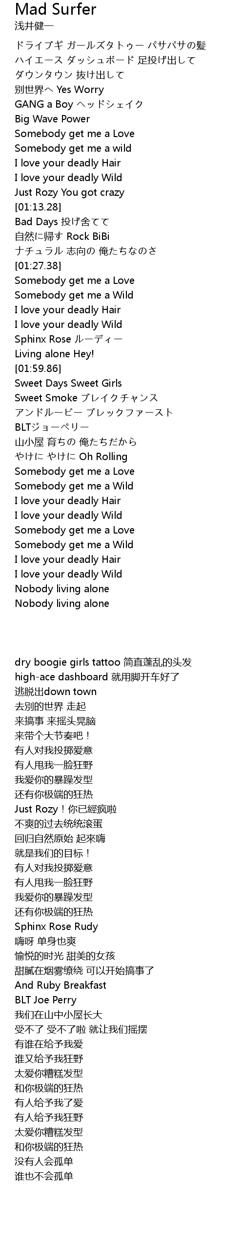 | [00:20.27] | dry boogie girls tattoo 简直蓬乱的头发 |