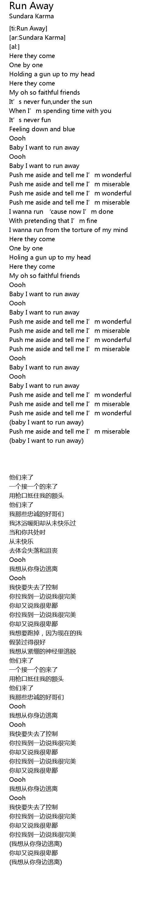 | [03:32.20] | (baby I want to run away) |