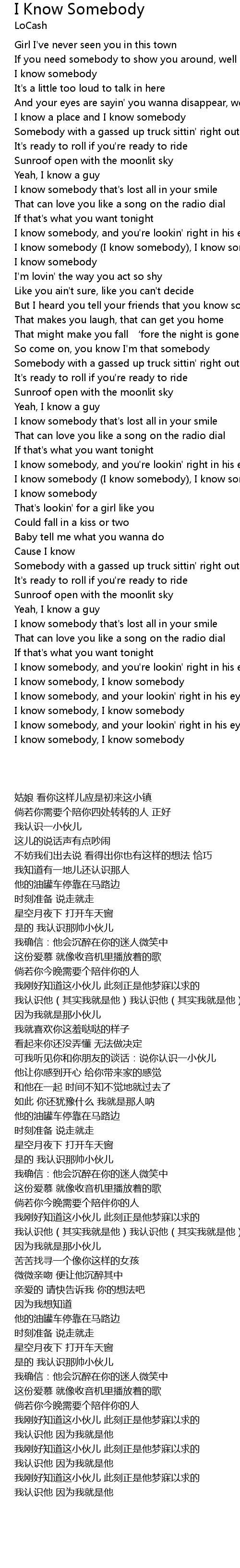 | 歌曲 | I Know Somebody |