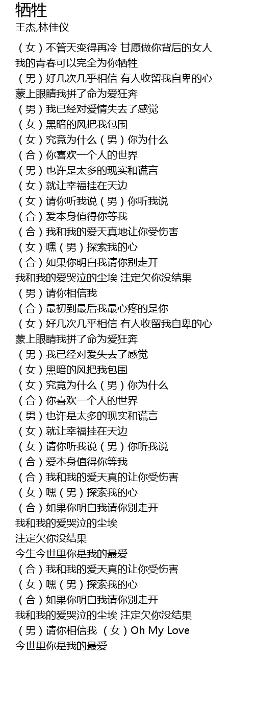 | [00:18.310] | 我的青春可以完全为你牺牲 |