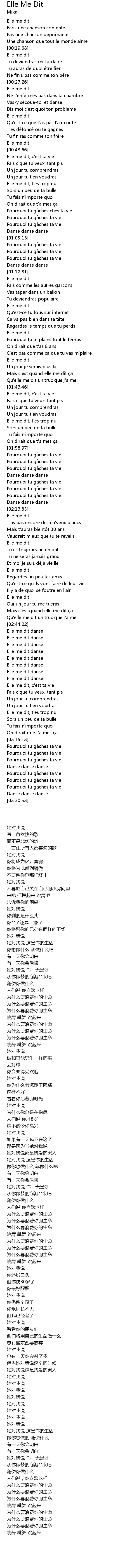 | [00:20.13] | Elle me dit |