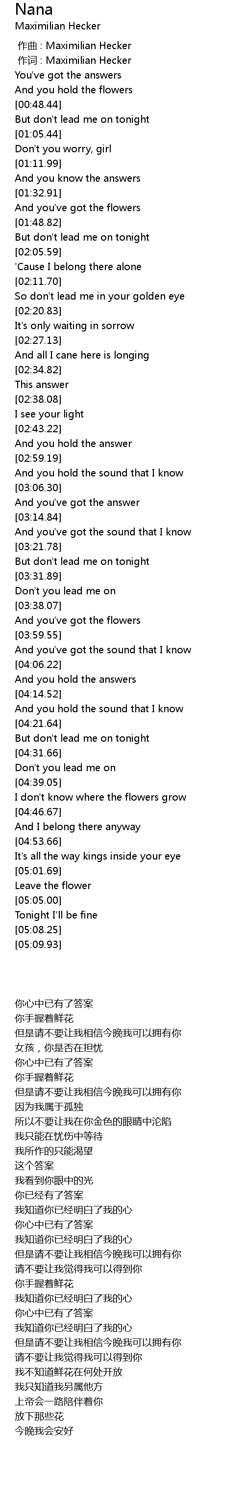 | [00:01.00] | 作词 : Maximilian Hecker |